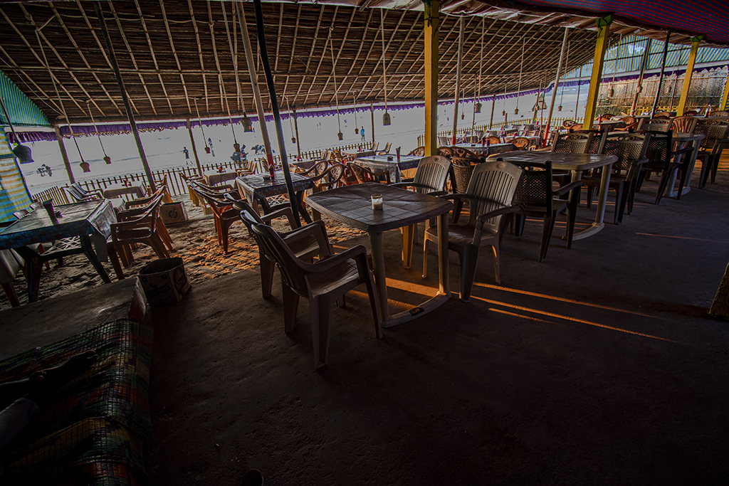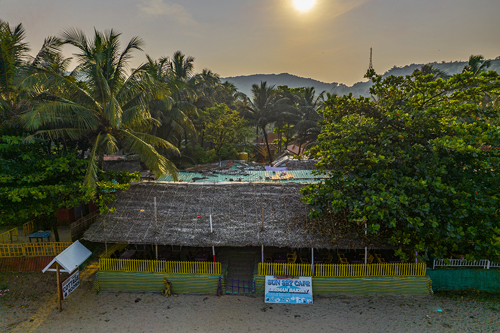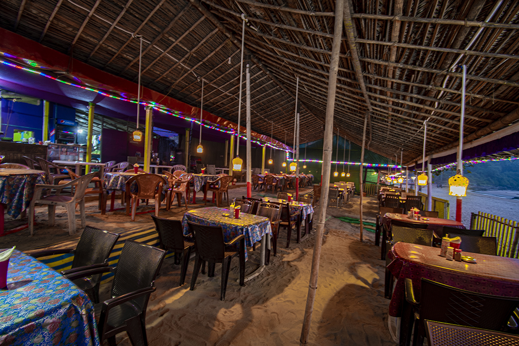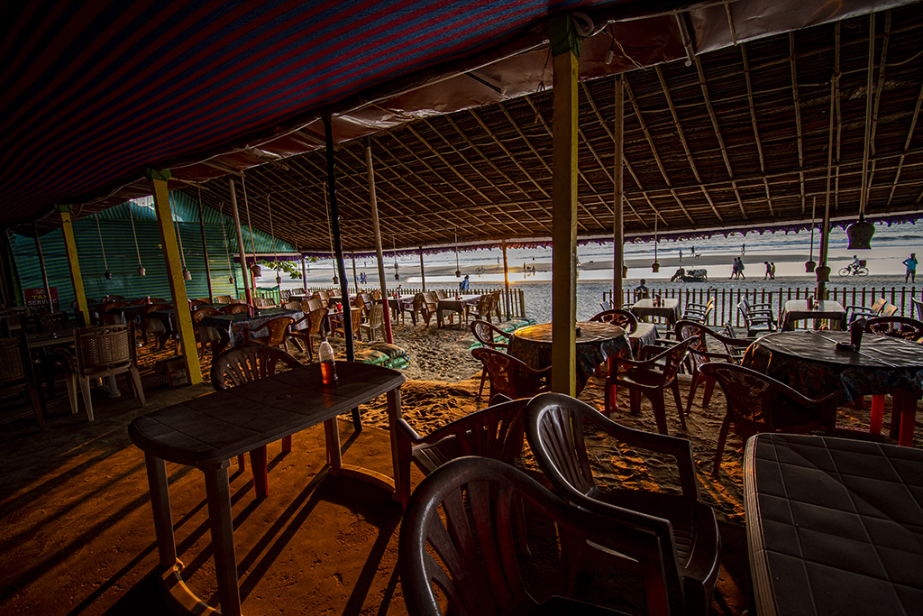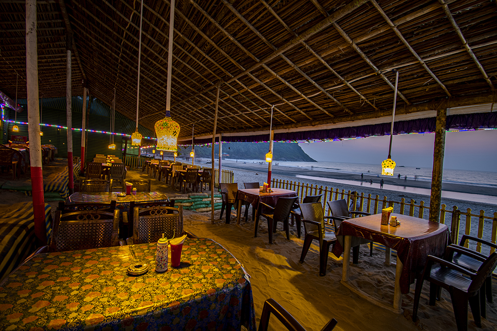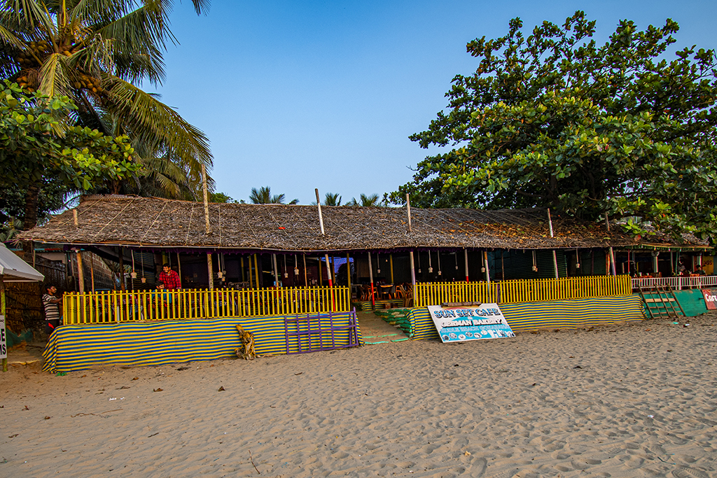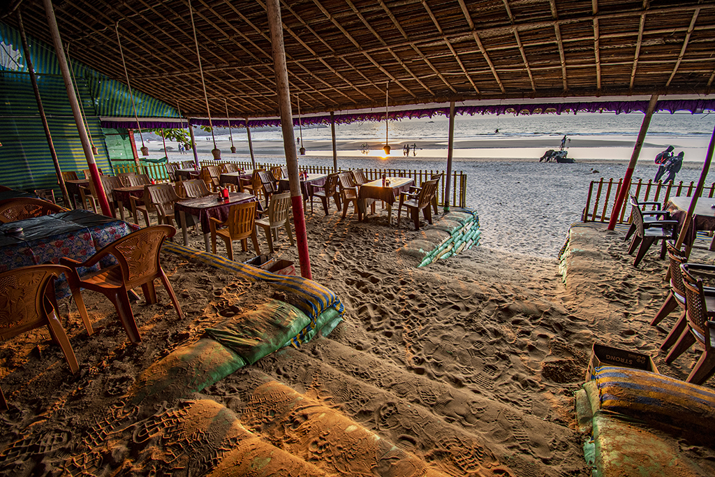 minimalistic Non AC beach shacks combined with a beach front restaurant. Marginally closer thank Sea View